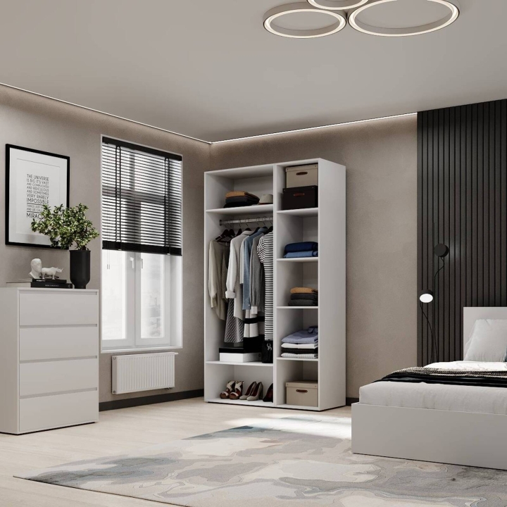 Модель идеально подойдёт для спальни, прихожей или гардеробной, где важно поддерживать порядок и компактно хранить вещи. Благодаря прямой форме шкаф легко впишется даже в небольшие помещения. Поверхности легко очищаются и не теряют привлекательного внешнего вида со временем.