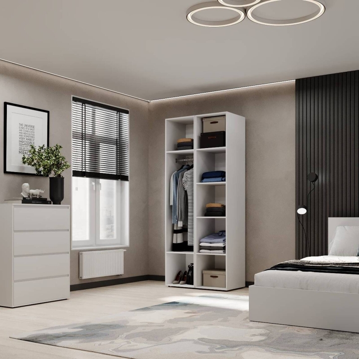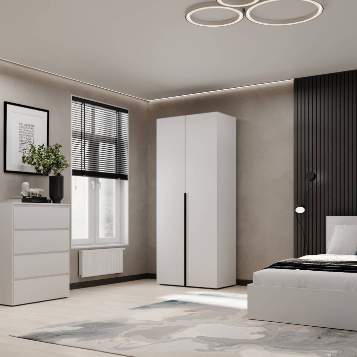 Модель идеально подойдёт для спальни, прихожей или гардеробной, где важно поддерживать порядок и компактно хранить вещи. Благодаря прямой форме шкаф легко впишется даже в небольшие помещения. Поверхности легко очищаются и не теряют привлекательного внешнего вида со временем.