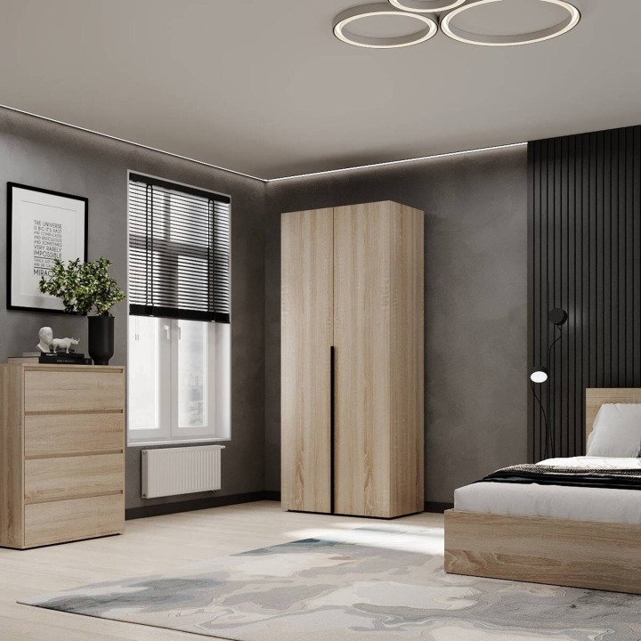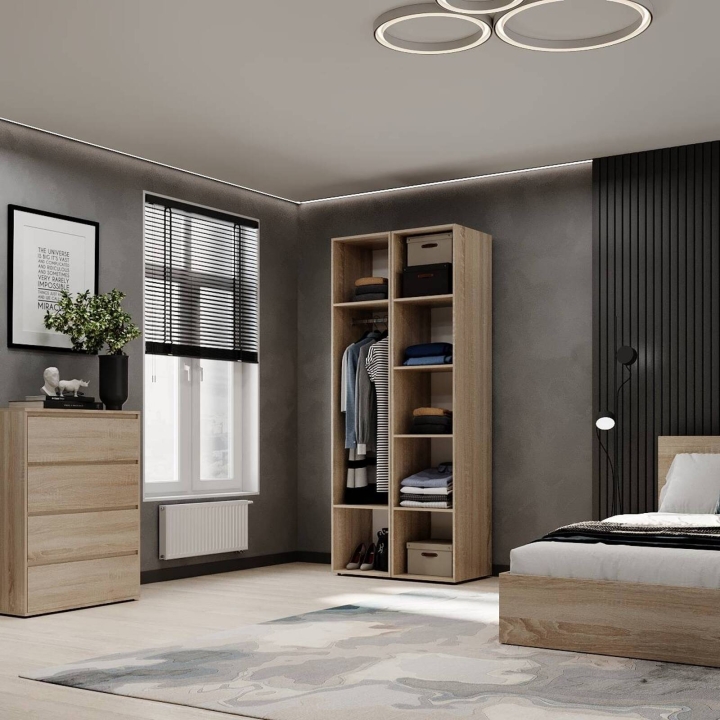 Модель идеально подойдёт для спальни, прихожей или гардеробной, где важно поддерживать порядок и компактно хранить вещи. Благодаря прямой форме шкаф легко впишется даже в небольшие помещения. Поверхности легко очищаются и не теряют привлекательного внешнего вида со временем.