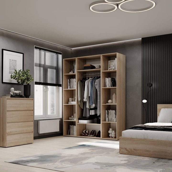 Модель идеально подойдёт для спальни, прихожей или гардеробной, где важно поддерживать порядок и компактно хранить вещи. Благодаря прямой форме шкаф легко впишется даже в небольшие помещения. Поверхности легко очищаются и не теряют привлекательного внешнего вида со временем.