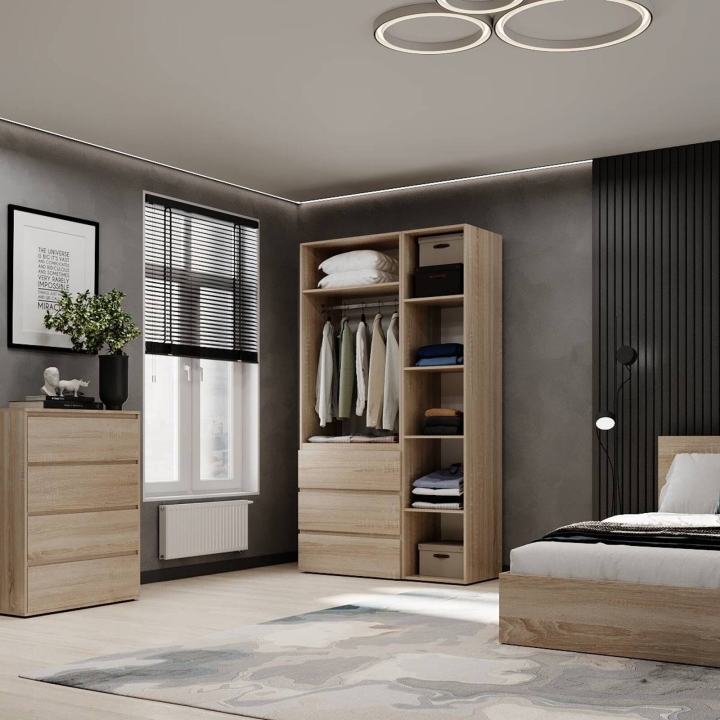 Модель идеально подойдёт для спальни, прихожей или гардеробной, где важно поддерживать порядок и компактно хранить вещи. Благодаря прямой форме шкаф легко впишется даже в небольшие помещения. Поверхности легко очищаются и не теряют привлекательного внешнего вида со временем.