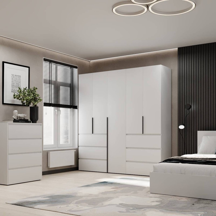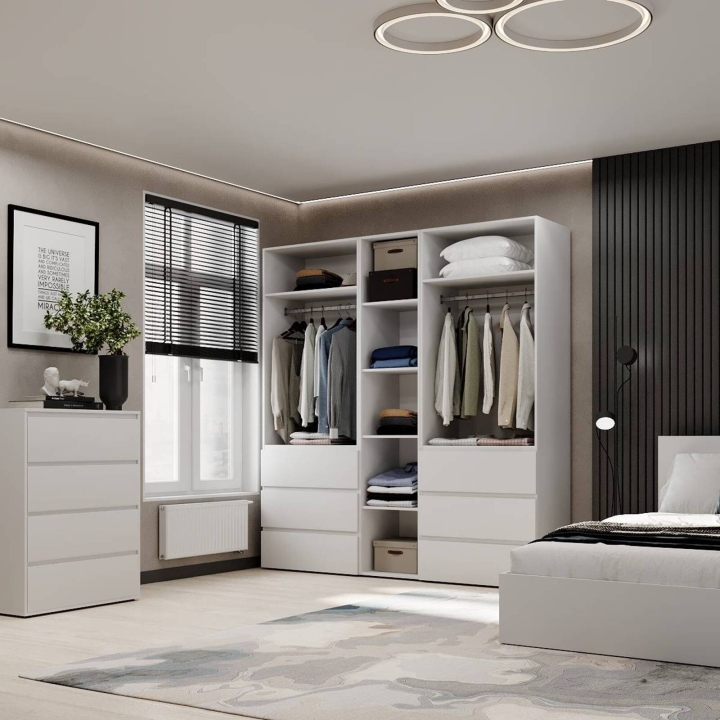 Модель идеально подойдёт для спальни, прихожей или гардеробной, где важно поддерживать порядок и компактно хранить вещи. Благодаря прямой форме шкаф легко впишется даже в небольшие помещения. Поверхности легко очищаются и не теряют привлекательного внешнего вида со временем.