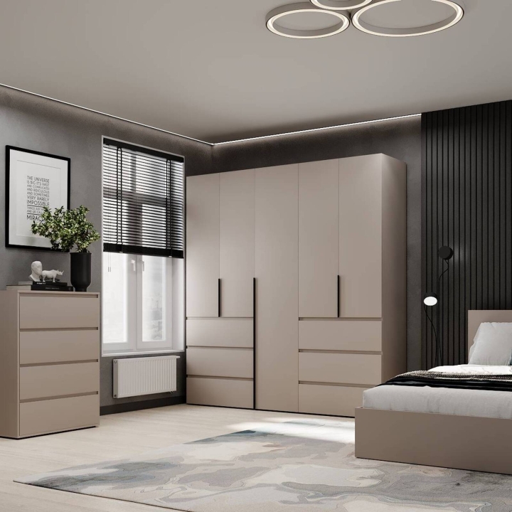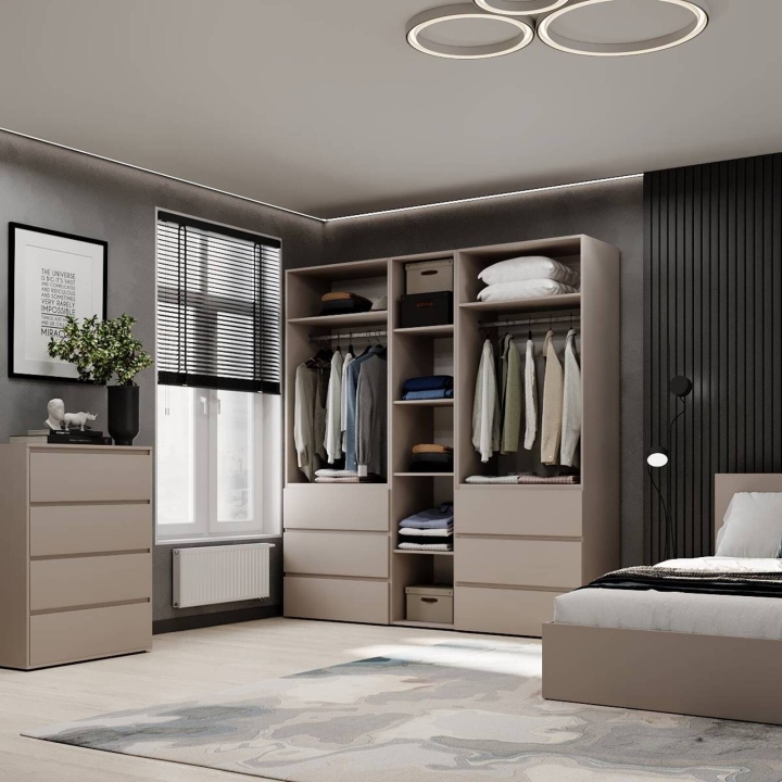 Модель идеально подойдёт для спальни, прихожей или гардеробной, где важно поддерживать порядок и компактно хранить вещи. Благодаря прямой форме шкаф легко впишется даже в небольшие помещения. Поверхности легко очищаются и не теряют привлекательного внешнего вида со временем.