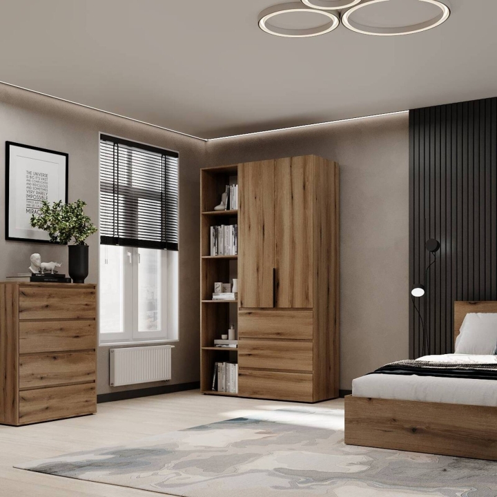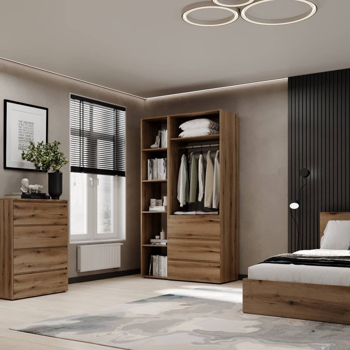 Модель идеально подойдёт для спальни, прихожей или гардеробной, где важно поддерживать порядок и компактно хранить вещи. Благодаря прямой форме шкаф легко впишется даже в небольшие помещения. Поверхности легко очищаются и не теряют привлекательного внешнего вида со временем.
