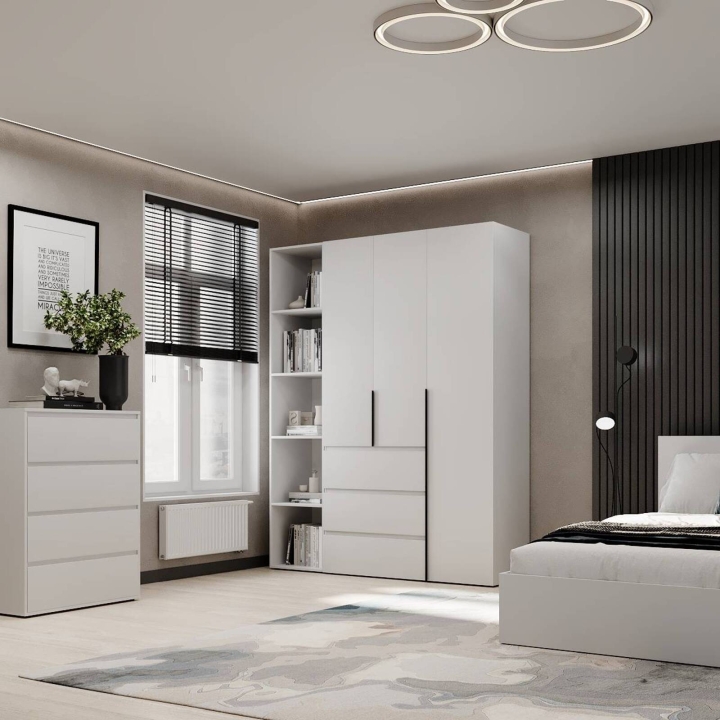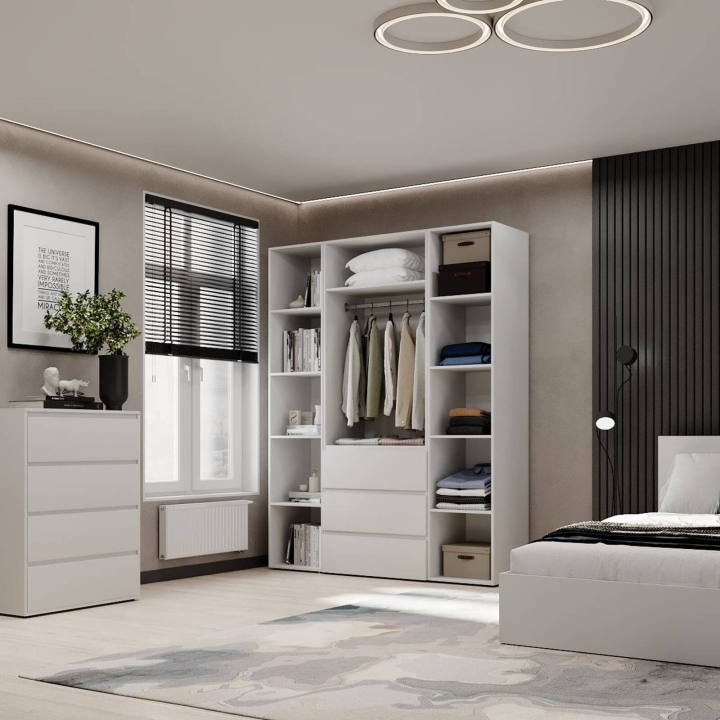 Модель идеально подойдёт для спальни, прихожей или гардеробной, где важно поддерживать порядок и компактно хранить вещи. Благодаря прямой форме шкаф легко впишется даже в небольшие помещения. Поверхности легко очищаются и не теряют привлекательного внешнего вида со временем.