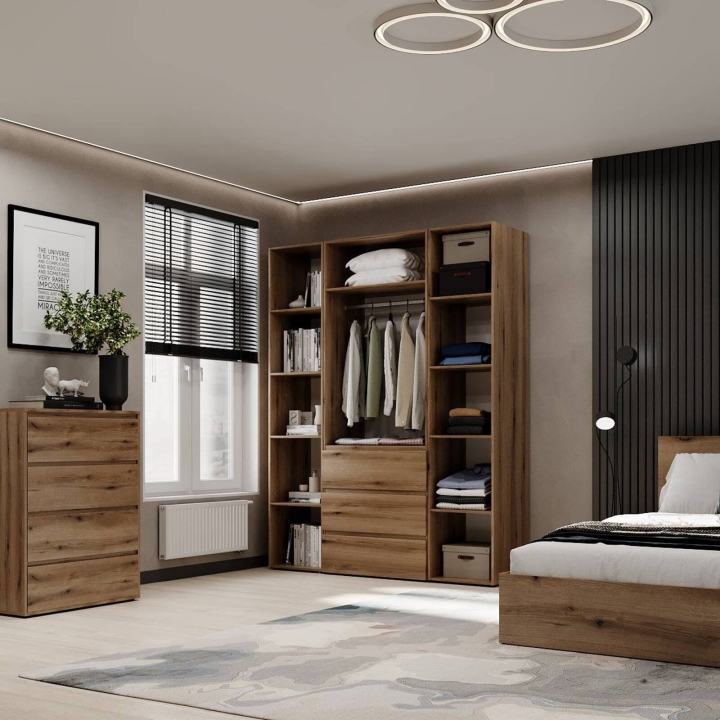 Модель идеально подойдёт для спальни, прихожей или гардеробной, где важно поддерживать порядок и компактно хранить вещи. Благодаря прямой форме шкаф легко впишется даже в небольшие помещения. Поверхности легко очищаются и не теряют привлекательного внешнего вида со временем.