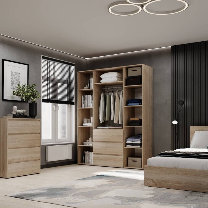 Модель идеально подойдёт для спальни, прихожей или гардеробной, где важно поддерживать порядок и компактно хранить вещи. Благодаря прямой форме шкаф легко впишется даже в небольшие помещения. Поверхности легко очищаются и не теряют привлекательного внешнего вида со временем.
