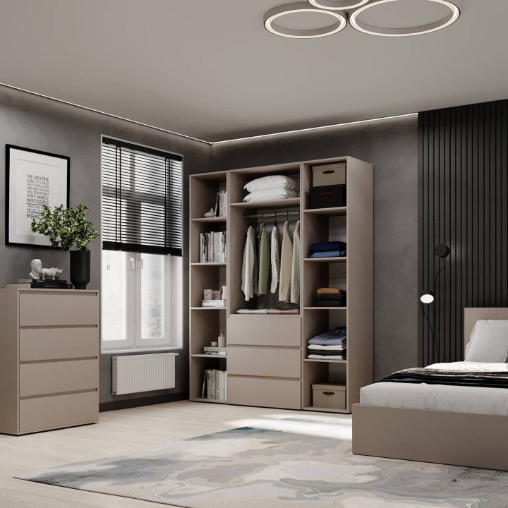 Модель идеально подойдёт для спальни, прихожей или гардеробной, где важно поддерживать порядок и компактно хранить вещи. Благодаря прямой форме шкаф легко впишется даже в небольшие помещения. Поверхности легко очищаются и не теряют привлекательного внешнего вида со временем.