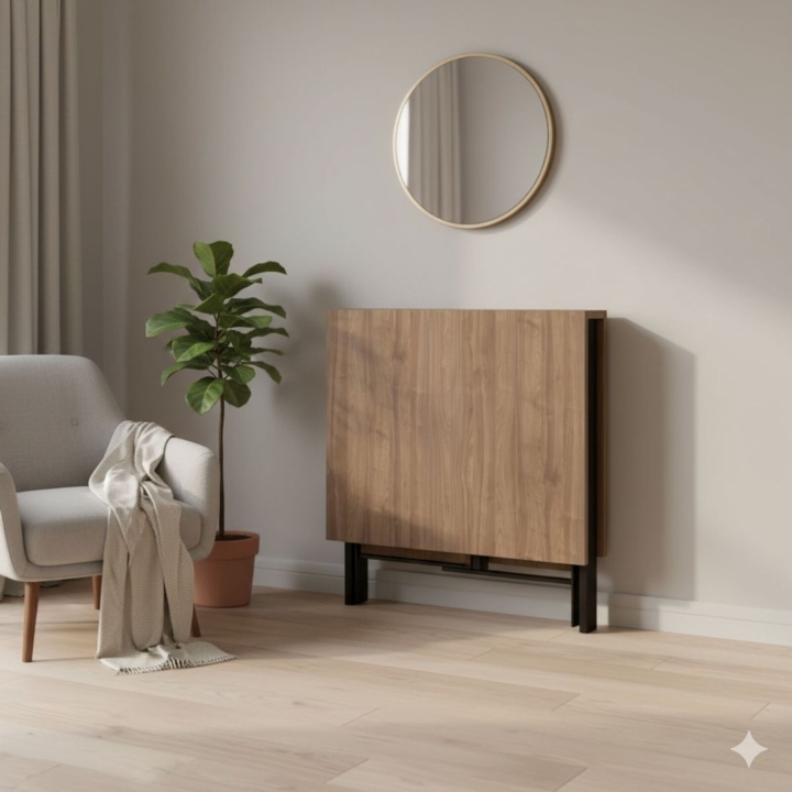 Максимально компактный обеденный стол-трансформер Voody идеально подойдет тем, кто не любит заполнять комнату большим количеством мебели, но при этом ценит комфорт, уют и большие компании. Благодаря палитре цветов он сможет отлично вписаться в интерьер любой комнаты или офиса. Качество — наш приоритет. Столешница изготовлена из ламинированной ДСП. Металлический корпус обеспечивает прочность и стойкость стола.