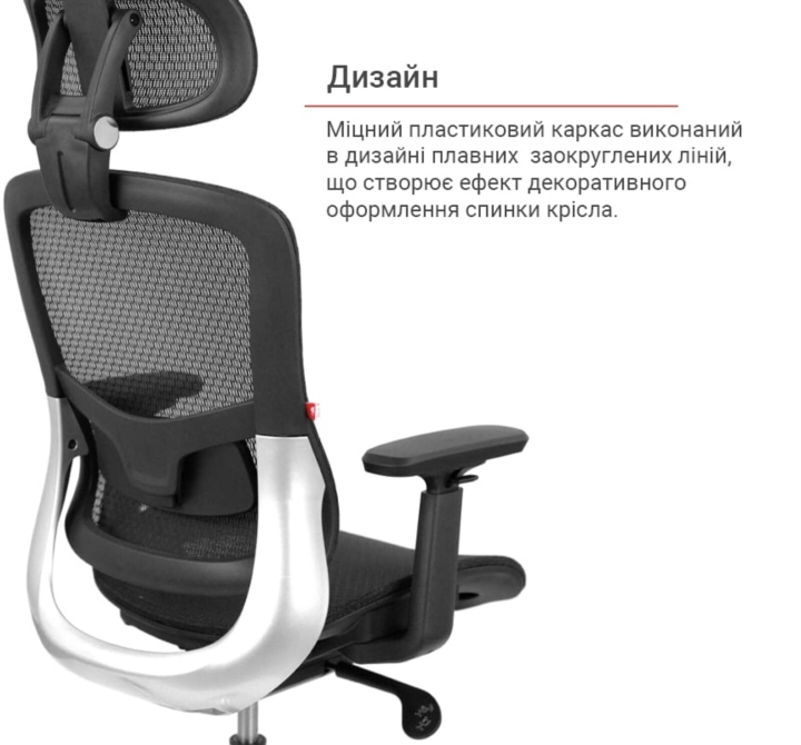 Дизайн. Отличительной особенностью модели является ее современный, легкий дизайн с использованием сетчатой обивки. Четкие линии и продуманная эргономика создают впечатление высокотехнологичного и функционального предмета мебели. Спинка кресла имеет выраженный поясничный изгиб, что обеспечивает правильное положение позвоночника.