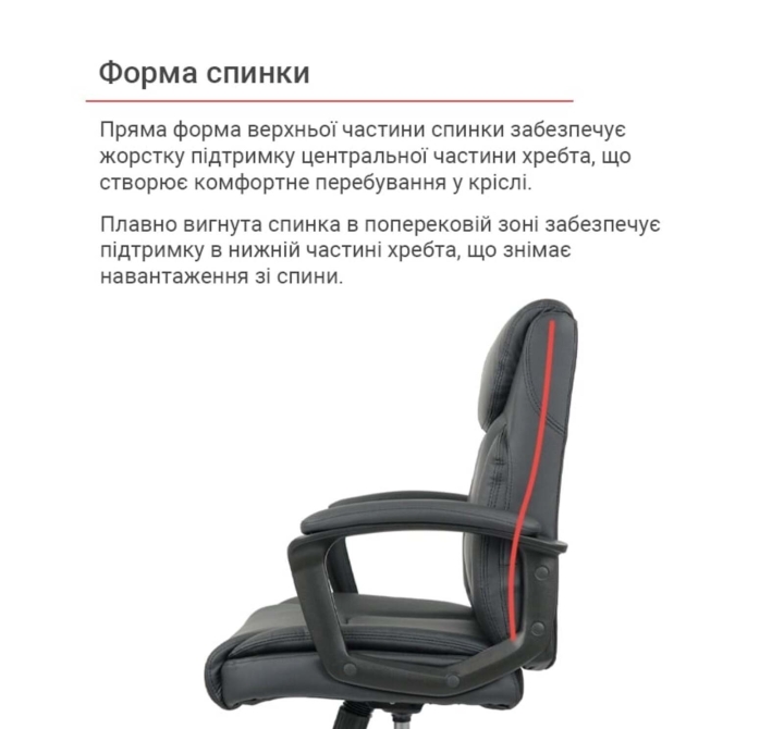 Підлокітники. Крісло оснащене фіксованими, але ергономічно вигнутими підлокітниками, що забезпечують зручну підтримку для рук та плечей. Вони гармонійно доповнюють загальний дизайн крісла та сприяють правильному положенню користувача під час роботи.
