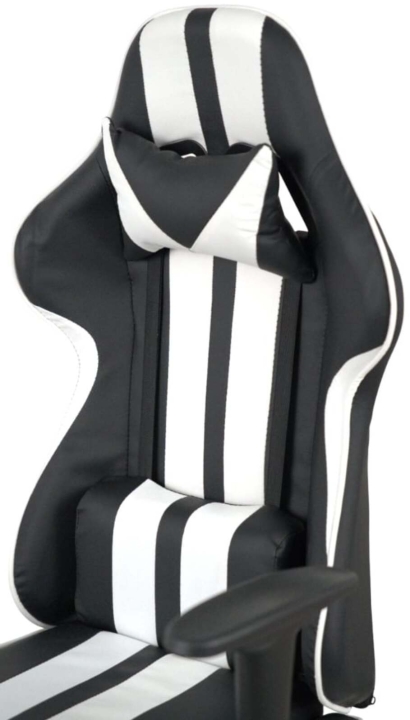 Дизайн. Модель отличается спортивным и динамичным дизайном, который гармонично впишется в интерьер молодежной комнаты. Контрастное сочетание основных цветов с яркими вставками, характерное для геймерских кресел, придает ему современность и привлекательность. Эргономичная форма спинки с боковой поддержкой и дополнительные подушки для шеи и поясницы подчеркивают ориентированность кресла на комфорт пользователя.