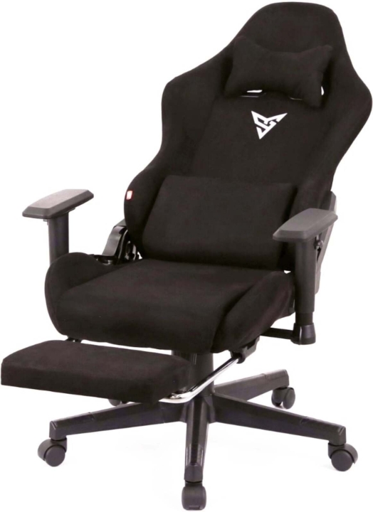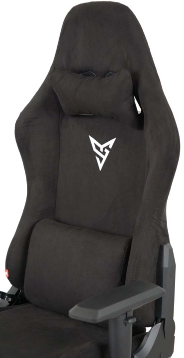 Дизайн. Модель отличается спортивным и динамичным дизайном, который гармонично впишется в интерьер игровой комнаты или домашнего кабинета. Обтекаемые формы и наличие фирменного логотипа на спинке придают креслу современный и привлекательный вид. Эргономичная форма спинки с боковой поддержкой и дополнительные подушки для шеи и поясницы подчеркивают ориентированность кресла на максимальный комфорт пользователя.