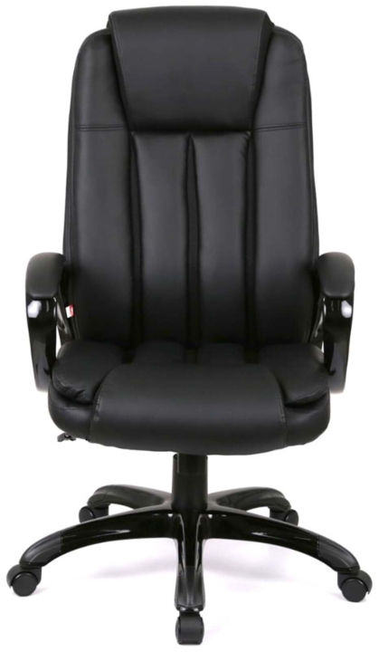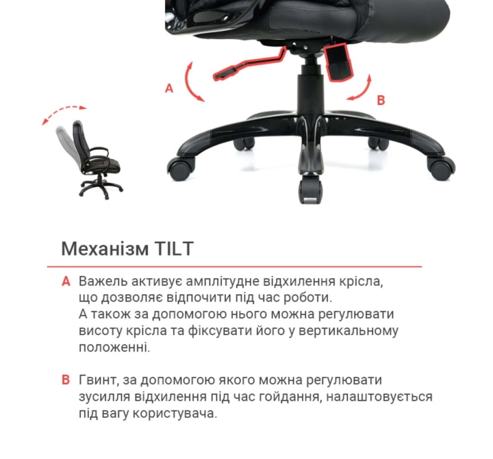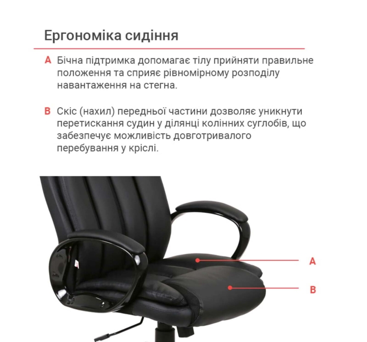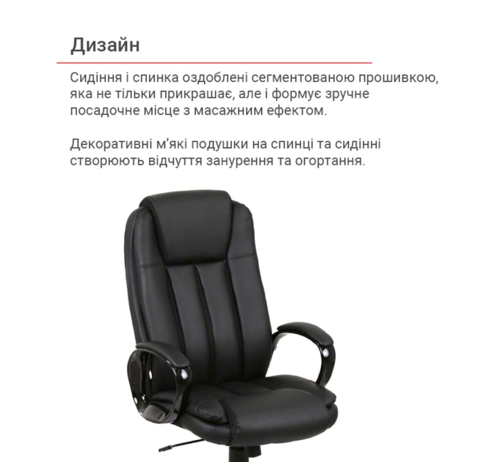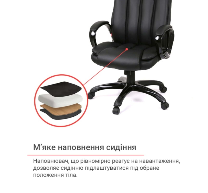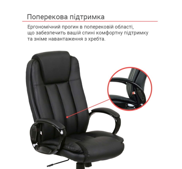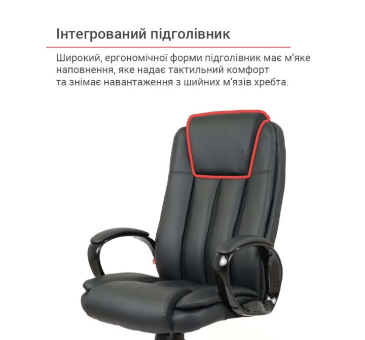 Крісло АКЛАС Інгул TILT Чорний (Чорний/Чорний)  має масивний та солідний вигляд, що робить його придатним для кабінету керівника або для тривалої роботи за комп'ютером. Хрестовина з коліщатками робить крісло стійким і мобільним, що відповідає вимогам сучасного офісного простору. Спинка має виражені бічні валики та додаткову секцію для підтримки шиї та голови. Це забезпечує надійну підтримку для спини та комфорт під час сидіння. Дизайн. Дизайн крісла орієнтований на створення комфортного та представницького місця для роботи, де естетика поєднується з функціональністю. Крісло має об'ємний вигляд завдяки пишним подушкам на сидінні та спинці. Особливістю є виражений підголівник і бічні підтримки, що створюють відчуття обхвату та комфорту. Відсутність контрастної прошивки робить дизайн більш однорідним та строгим. Обивка. Крісло оббите високоякісною екошкірою, що надає йому солідний та дорогий вигляд. На спинці є вставки із сітки, ідеальні для забезпечення циркуляції повітря. Хрестовина. Металева хромована хрестовина на п'яти колесах надає кріслу стильного та сучасного вигляду, а також забезпечує мобільність та стійкість. Чорний колір хрестовини гармонійно поєднується з кольором крісла. Гумові ролики забезпечать кріслу необхідну мобільність на будь-якому  твердому покритті. Підлокітники. Вигнуті підлокітники виготовлені з металу чорного кольору, що гармонійно поєднується з оббивкою та надає кріслу сучасного акценту.  Механізми. Вбудований механізм гойдання Тілт дозволяє влаштувати собі улюблений сеанс релаксу, зафіксувавши крісло в одному положенні. Надійний газліфт дозволяє змінити висоту крісла з урахуванням вашого зростання. Особливості. Висока спинка з підголівником забезпечує комплексну підтримку для спини, шиї та голови, що допомагає розслабити м'язи та знизити напругу під час тривалого сидіння. Крісло має виражені бічні валики на спинці та сидінні, які підтримують правильну поставу та комфорт. М'які подушки на сидінні та спинці забезпечують високий рівень комфорту. Повністю чорний колір крісла, включаючи хрестовину та підлокітники, створює єдиний, солідний вигляд.