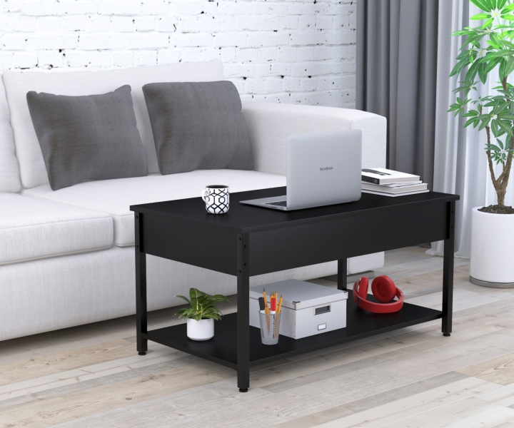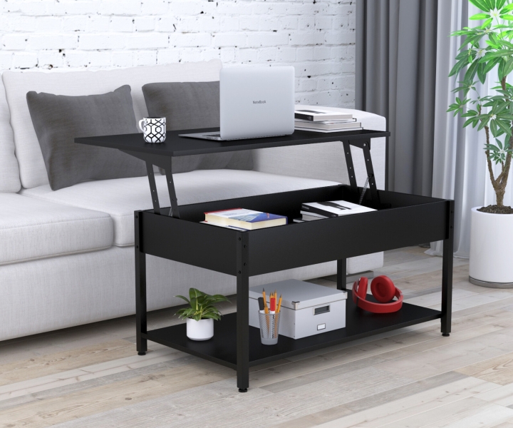 L-5 slider от компании Loft Design - это журнальный столик с уникальной подъемной конструкцией, которая позволяет трансформировать его в рабочий стол или компактный обеденный стол, когда вы отдыхаете на диване. Вы можете легко наслаждаться работой с ноутбуком или едой перед журнальным столиком с подъемной столешницей, так как столешница фиксируется на оптимальной высоте. Под столешницей имеется вместительное скрытое пространство для хранения самых различных предметов: настольных игр, игрушек, посуды, закусок и тд. Открытая полка внизу также весьма функциональна, - на неё можно складывать использованную посуду, подушки, плед, журналы и книги.