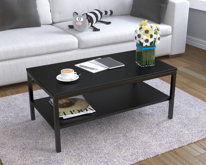 Журнальный столик L-1 от компании Loft Design отлично вписывается практически в любой интерьер. Он выполнен из ЛДСП толщиной 16 мм и кромкой 2 мм, а также металлического каркаса профилем 25*25 с черным матовым окрасом.