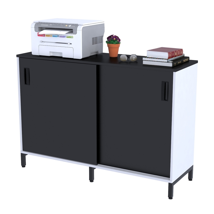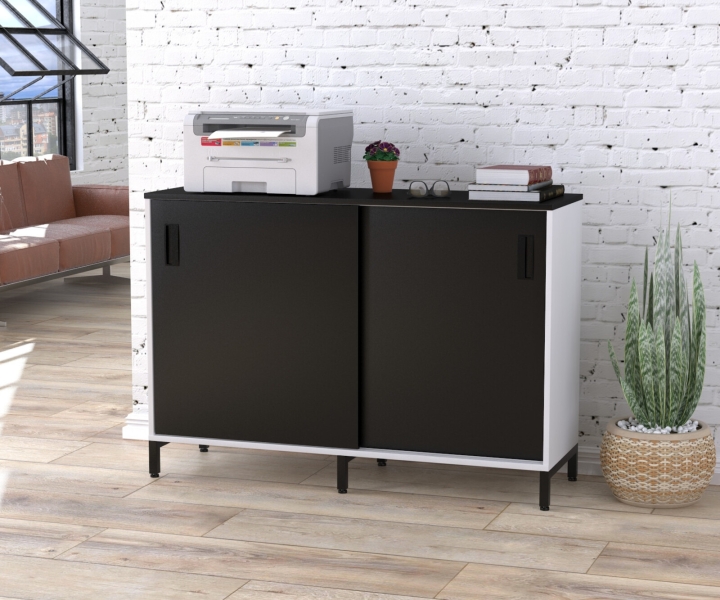 Офисная тумба с раздвижными дверями LS-1200-830 антрацит от компании Loft Design - это современный многофункциональный и в то же время стильный предмет интерьера. В угоду современным тенденциям, тумба выполнена в минималистическом стиле. У неё отсутствуют декоративные элементы, а врезные ручки и раздвижные двери не выступают за пределы тумбы. Однако благодаря красивому сочетанию фасадов, имеющих расцветку с выраженной древесной текстурой, корпуса выполненного в белом цвете, а также чёрных матовых металлических ножек, достигается модный сейчас стиль Лофт.