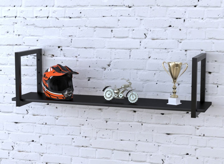 Настенная полка PL-1-18 имеет классический вид, выполнена в стиле Лофт. Массивные металлические кронштейны являются идеальным держателем для полки. Они одновременно поддерживают полку под идеально прямым углом, относительно стены, и служат опорой для высоких книг.