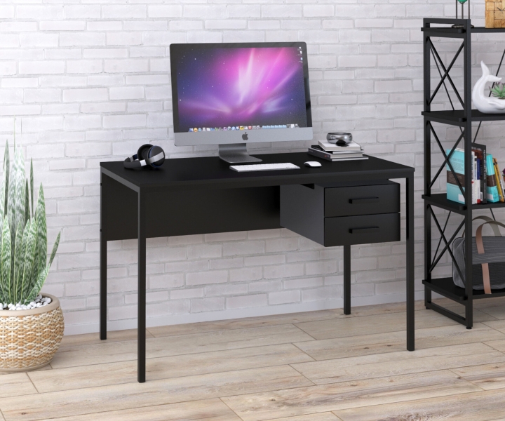 Письменный стол L-2p  с ящиками - это максимально функциональный стол в стиле минимализм. Он впишется в любой интерьер. Сочетание металлических элементов и ДСП - не только дань современным тенденциям, оно позволяет сделать конструкцию прочной и в тоже время стройной. Это отличный вариант рабочего стола для офиса или письменного стола для школьника. Благодаря наличию ящиков (одного или двух на выбор) вы сможете всегда поддерживать порядок на рабочем месте.