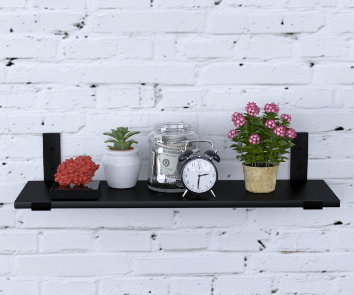 Настенная полка J-18 компании Loft Design - это универсальная и функциональная вещь. Аккуратные крепежи из металла толщиной 4 мм поддерживают ДСП снизу, поэтому полка прочнее, чем полка pl-6. Полочка J-18 создает уют в интерьере. Полка применяется для хранения книг и наград, цветочных горшков и небольших предметов обихода. Полка J-18 состоит из двух металлических полкодержателей и полки из ламинированного ДСП.