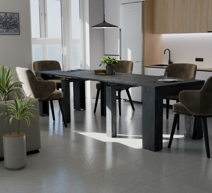 - трансформация стола позволяет увеличить количество мест до 12 человек