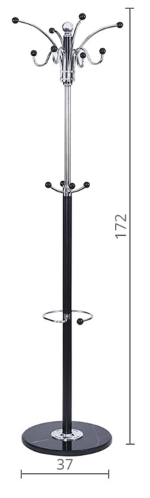 Основание. Вешалка имеет круглое, устойчивое каменное основание. В центре основания, где крепится стойка, есть хромированный элемент. Тяжелая и широкая основа обеспечивает отличную стабильность.