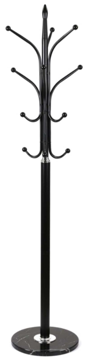 Основу вішака становить циліндрична стійка чорного кольору, яка виходить з круглої, стійкої основи з чорного мармуру, що забезпечує стабільність.