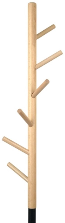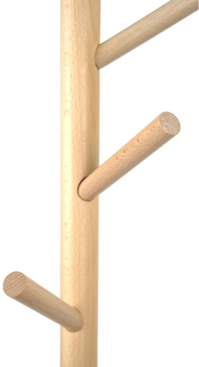 От верхней, деревянной части ствола отходят короткие, цилиндрические или слегка конические крючки, также изготовленные из светлого дерева. Эти крючки расположены на разной высоте с разных сторон, имитируя ветви дерева. Их простая форма делает их функциональными для вешания одежды, сумок, шарфов или шляп.