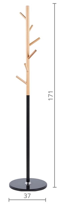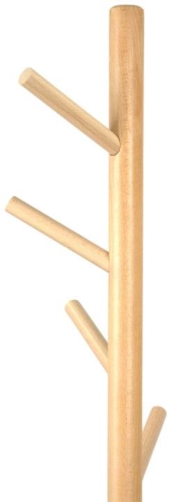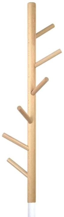 От верхней, деревянной части ствола отходят короткие, цилиндрические или слегка конические крючки, также изготовленные из светлого дерева. Эти крючки расположены на разной высоте с разных сторон, имитируя ветви дерева. Их простая форма делает их функциональными для вешания одежды, сумок, шарфов или шляп.