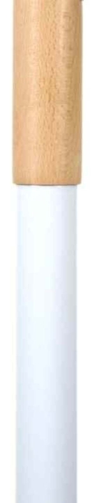 Он состоит из высокого цилиндрического ствола, разделенного на две части по цвету и материалу: нижняя часть выполнена в матовом черном/белом цвете, а верхняя - из светлого дерева с натуральной текстурой.