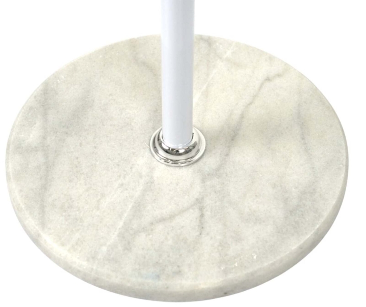 Основа вешалки - это круглая, плоская платформа черного цвета, изготовленная из мрамора для обеспечения устойчивости. Между стойкой и основой присутствует тонкий металлический акцент, что придает изделию современный вид.