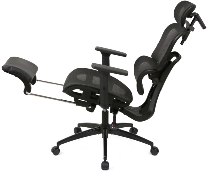 В сиденье кресла используется прочная основа с натянутой сеткой, обеспечивающая удобную посадку и дышащий эффект. Также кресло оснащено выдвижной подставкой для ног — отличной эргономичной функцией для отдыха и релаксации. Подставка позволяет нормализовать кровообращение в положении лёжа и хорошо отдохнуть.
