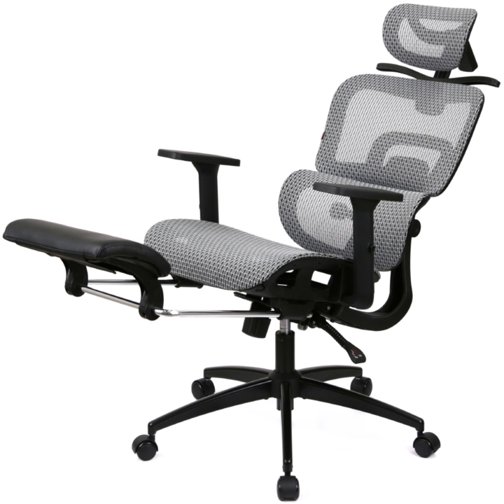 В сиденье кресла используется прочная основа с натянутой сеткой, обеспечивающая удобную посадку и дышащий эффект. Также кресло оснащено выдвижной подставкой для ног — отличной эргономичной функцией для отдыха и релаксации. Подставка позволяет нормализовать кровообращение в положении лёжа и хорошо отдохнуть.