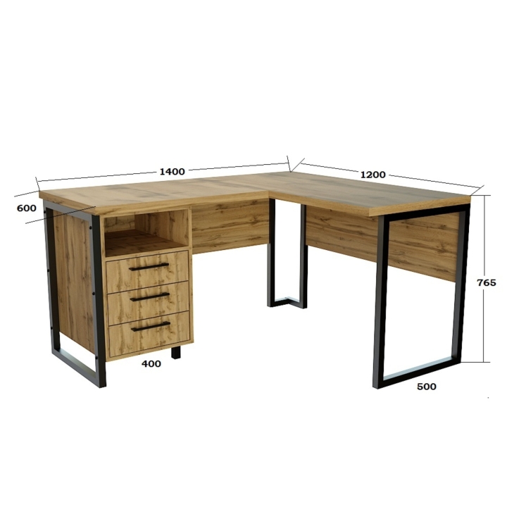Офисный стол лофт СУЛГ-3 Дуб Аппалачи (1400x1200x765) Дуб Аппалачи Гамма стиль