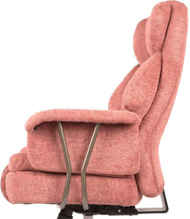 Подлокотники. Подлокотники интегрированы в общий дизайн кресла. Сверху они имеют толстый слой наполнителя и обитаны той же тканью, что и все кресло. Основа подлокотников — металлические трубки в цвет крестовины, что обеспечивает дополнительную прочность и жесткость конструкции.