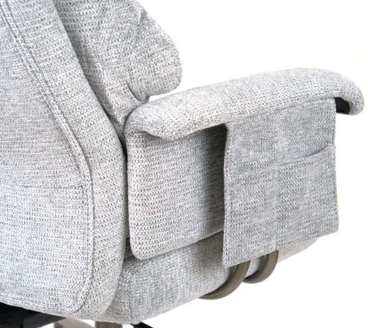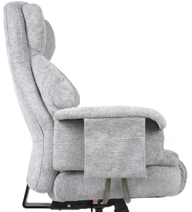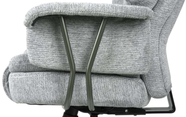 Подлокотники. Подлокотники интегрированы в общий дизайн кресла. Сверху они имеют толстый слой наполнителя и обитаны той же тканью, что и все кресло. Основа подлокотников — металлические трубки в цвет крестовины, что обеспечивает дополнительную прочность и жесткость конструкции.