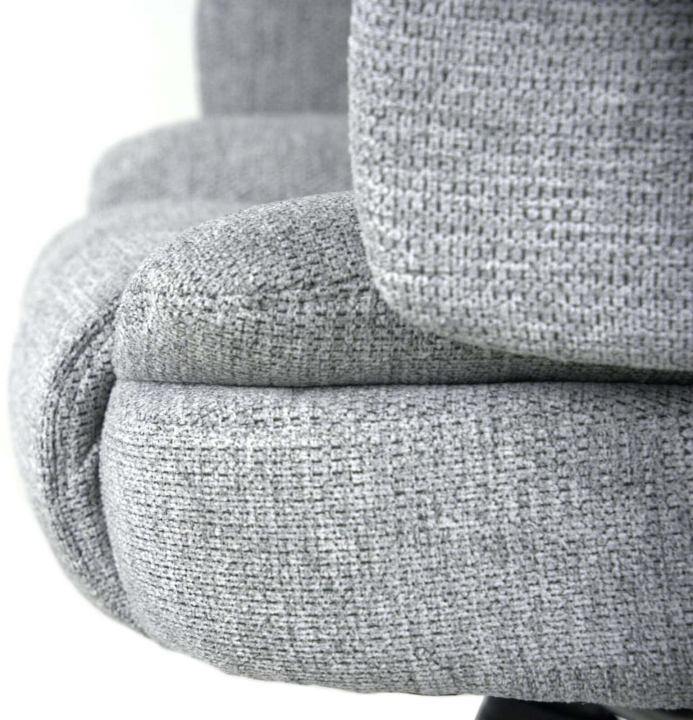 Обивка. Кресло обито высококачественной текстильной тканью с фактурой. Такая ткань значительно приятнее к телу, чем кожа или экокожа, особенно летом, поскольку она «дышит». Ткань плотная и устойчивая к истиранию, что гарантирует долгий срок службы без появления трещин.