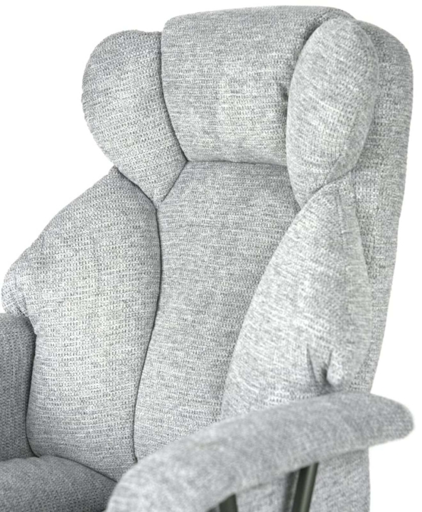 Дизайн. Дизайн кресла выполнен в стиле Soft Luxury. Спинка имеет выраженный подголовник и боковую поддержку, что визуально напоминает автомобильное сиденье класса люкс. Силуэт массивный, но благодаря изящной металлической основе кресло не выглядит перегруженным.