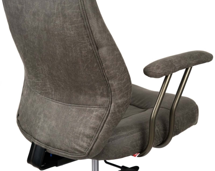 Подлокотники. Подлокотники имеют оригинальную Т-образную конструкцию на металлической основе. Верхняя часть оснащена мягкими накладками, оббитыми той же тканью, что и все кресло. Металлические стойки подлокотников имеют изящный изгиб, гармонирующий с основой кресла.