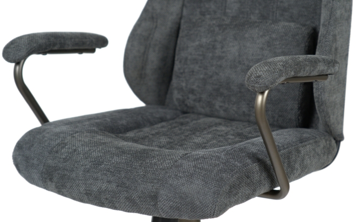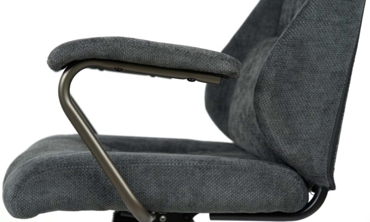 Подлокотники. Подлокотники имеют изящную дугообразную форму. Основа сделана из темного металла, повторяющего цвет крестовины. Сверху расположены мягкие накладки, обитые основной тканью, что позволяет рукам комфортно отдыхать во время работы.