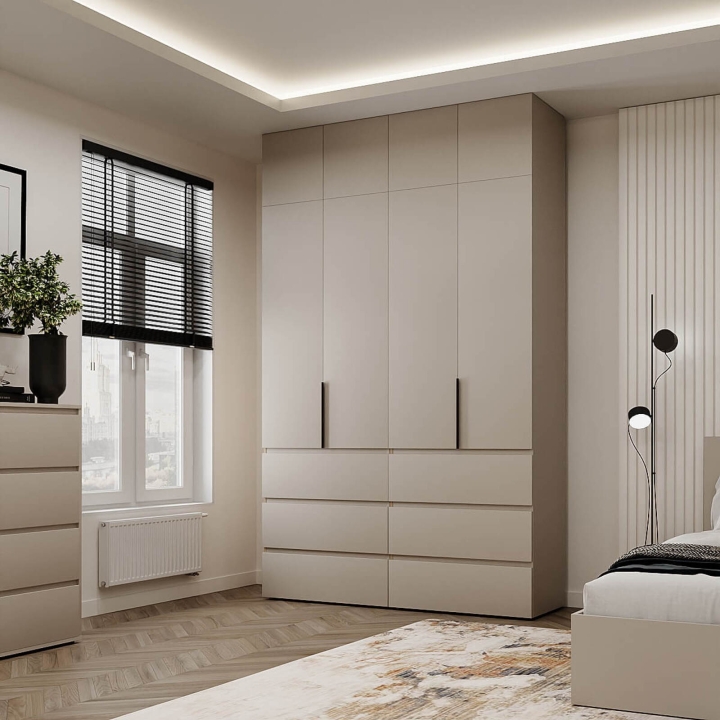Нужно больше места для вещей? Выбирайте свой цвет и заказывайте шкаф высокий на 4 двери с антресолью на 30 см Light №10 — масштабное решение для вашего комфорта!