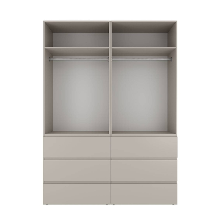 Шкаф состоит из двух одинаковых двухдверных модулей (по 80 см каждый), которые формируют четыре уровня хранения: