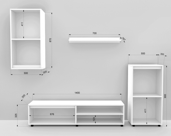 Конструкція: ніша під телевізор з діагоналлю від 19 до 50 дюймів, під час оформлення замовленням, будь ласка повідомте розміри свого телевізора. Вітальня може бути виготовлена з фасадами МДФ, деталі і вартість виробу уточнюйте у менеджера.