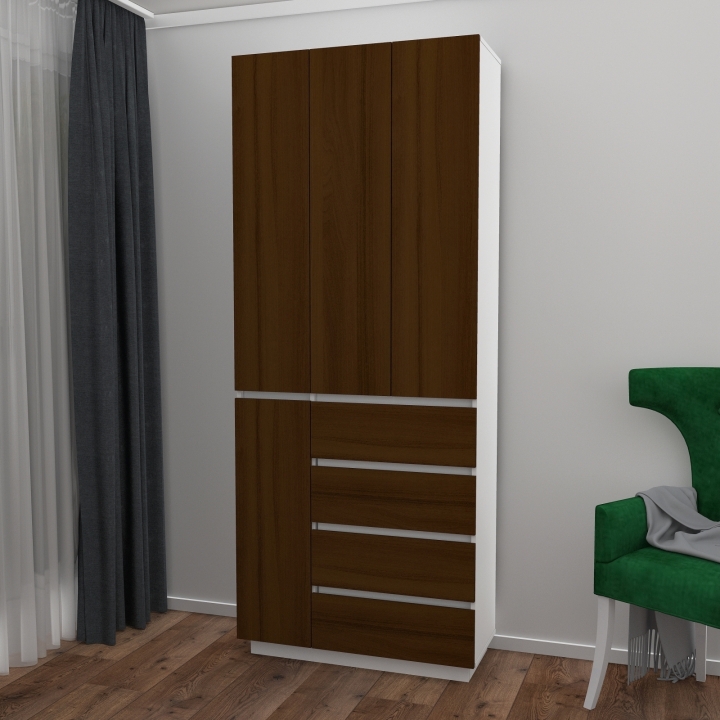 Розміри розпашної шафи: ширина - 900 мм (90 см); глибина - 380 мм (38 см); висота - 2200 мм (220 см).