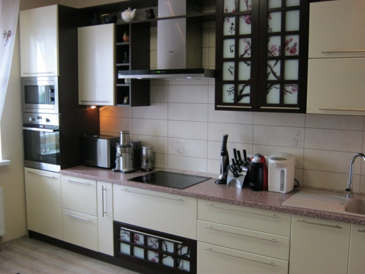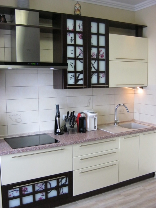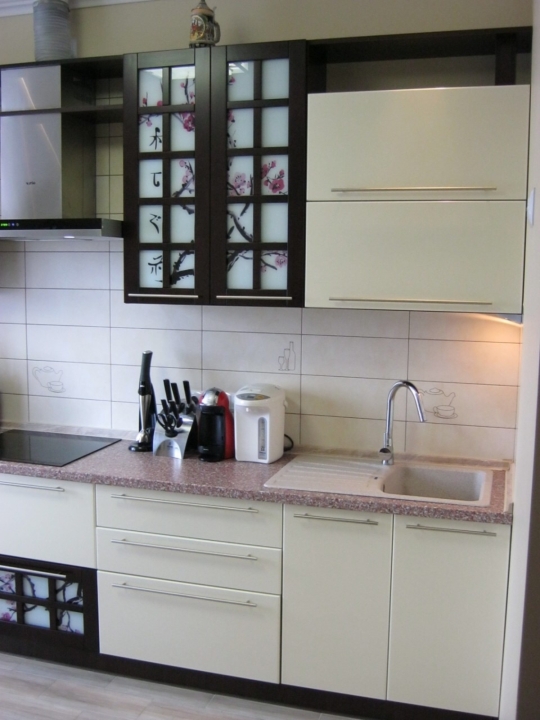 Матеріали: корпус - ламінована ДСП «Swiss Krono» 16 мм; Фасади - МДФ. Крайка - протиударна, ПВХ, товщиною 0,5 мм. Фурнітура - "DC", "Linken".