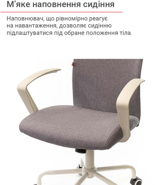 Дизайн. Акуратна тонка спинка пірамідальної форми, м'яке сидіння, підлокітники і хрестовина, виконані в одному кольорі. Всі деталі виглядають просто, лаконічно, але в той же час легко і стильно.