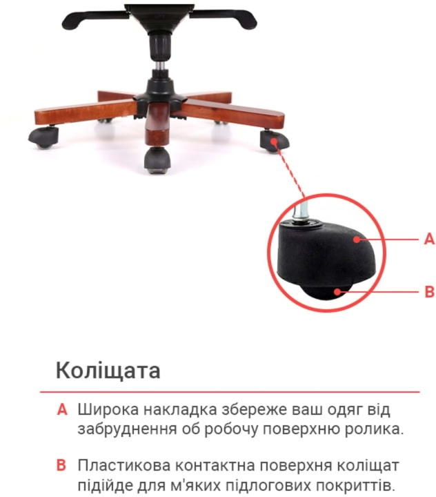 Підлокітники. Г-подібна форма і розмір підлокітників підібрані таким чином, щоб рукам було комфортно на них спиратися. Натуральне тоноване дерево створює відчуття домашнього затишку і теплоти. М'які накладки захищають руки від контакту з холодною і твердою поверхнею і дарують додатковий комфорт. Краса дерева довгі роки буде радувати вас завдяки стійкому лаковому покриттю. Висота підлокітників в нижньому положенні підібрана так, що крісло з легкістю заходило під стандартний робочий стіл висотою від 75 см. Це дозволяє значно звільнити навколишній простір, в той час коли крісло не використовується за призначенням.