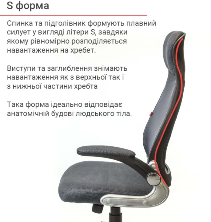 Підлокітники. У даній моделі стильні масивні підлокітники оригінальної форми з чорного пластику. Вони мають горизонтальну робочу поверхню, що дозволяє зручно розмістити руки і зняти зайве навантаження з плечових суглобів. М'які накладки послужать вам комфортної опорою. Гвинтові кріплення підлокітників дають можливість підняти їх вертикально, і присунути крісло впритул до столу, коли крісло не використовується.