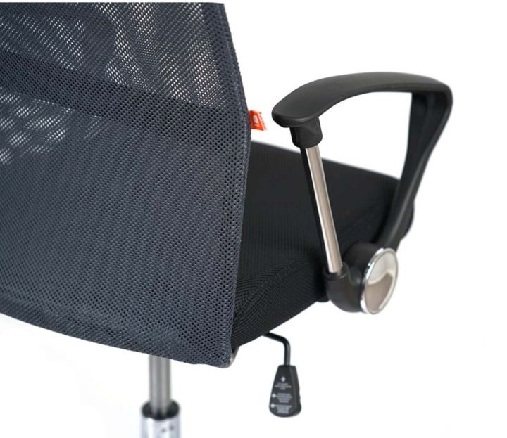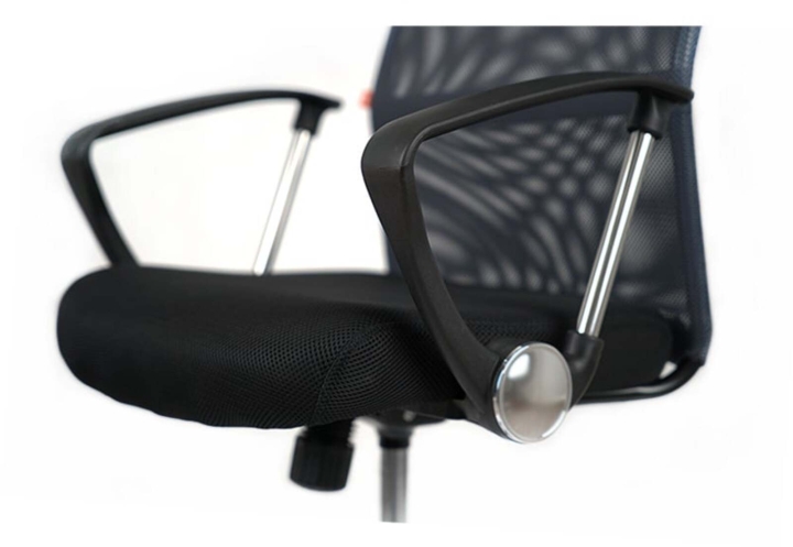 Підлокітники. У даній моделі стильні комбіновані підлокітники з чорного пластику і металевої труби. Поверхня пластика текстурована, завдяки чому руки не зісковзують в процесі роботи. Металева вставка гармонує з хромованою хрестовиною, створюючи єдиний неповторний ансамбль.