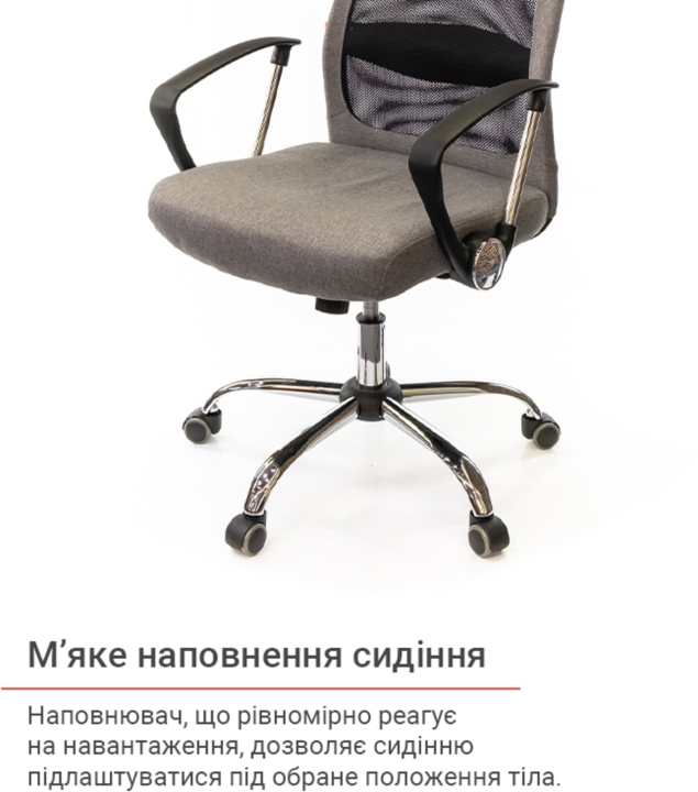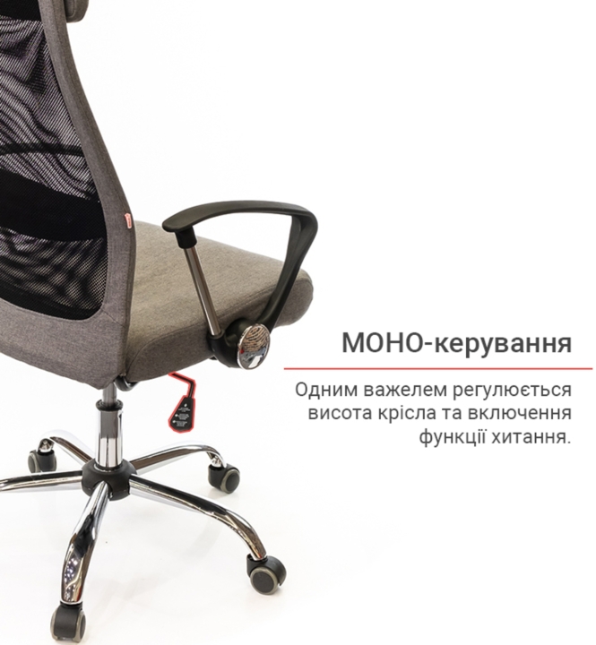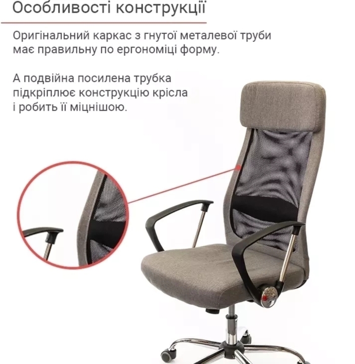 Дизайн. Елегантна комбінація двох матеріалів - сітки і тканини - це основний елемент дизайну даної моделі, який робить крісло стильним і повітряним.